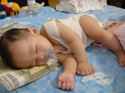 看!小豆豆含著淚光睡著了,一付就很可憐的樣子... 不知道有沒有影響視力!