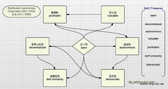 3. 自治性,DAC系統人人可以參與,參與者都是DAC系統的子公司或者子單元,並從自身角度促進DAC的發展。參與者的自發行為保障了DAC的運行