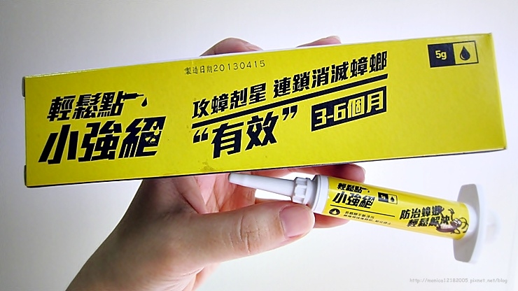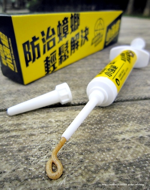 針筒型的特殊包裝,只要管身從後方輕輕一推,餌膠會從前端細長出口設計滲出,使用過程無須擔心沾手問題,讓我可以輕鬆、優雅、快速的完成殺蟑步驟,真是太貼心了啦 (