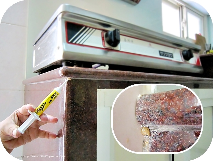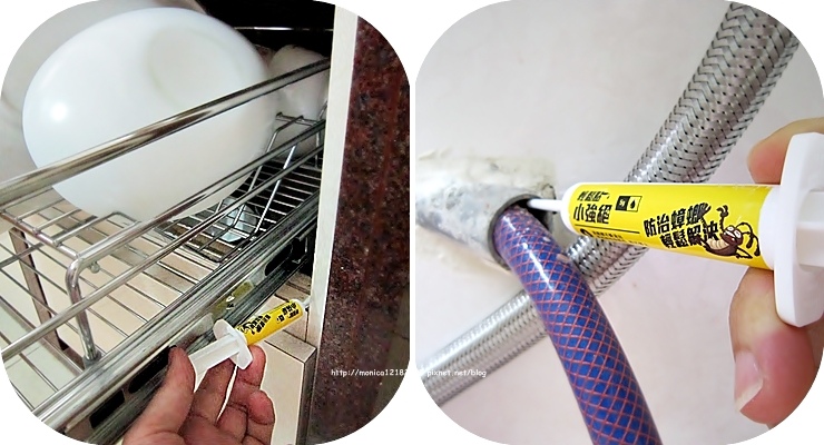 施打在乾燥且陰暗隙縫內,例如︰抽屜、廚櫃.....,我家外露式的瓦斯爐檯面下方,以及洗碗槽下方,還有儲物櫃的門邊角落,總之鎖定光線照不到的邊邊角角。