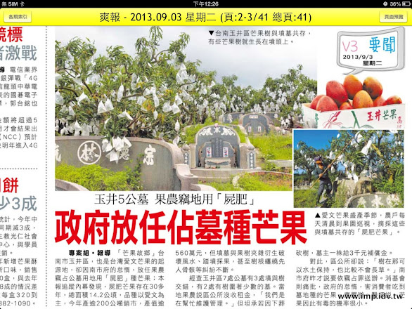 原文網址: 屍肥芒果! 玉井1%愛文芒果竟種公墓 樹根吸屍水... | ETtoday地方新聞 | ETtoday 新聞雲http://www.ettoday.net/news/20130903/265472.htm#ixzz2e1g9lGHW