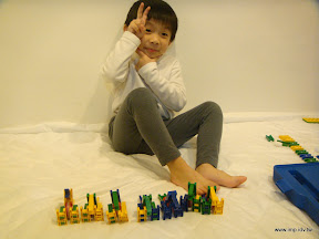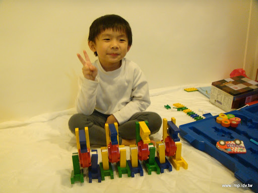 恐龍是樂寶裡面算簡單的,小豆豆自己看圖片就能組合,當初會有買的衝動是小豆豆在賣場看著展示的鴨子,就有模有樣地做出一大一小,完全不需要大人幫忙。